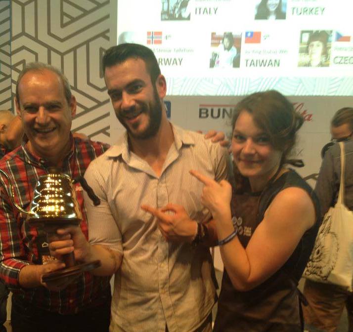 In other world championship news, five-time Greek Barista Champion, two-time World Barista Championship finalist and globe-trotting trainer Stefanos Domatiotis was today named World Brewers Cup Champion, a title he nearly achieved at the first World Brewers Cup Championship in 2011. We’ll have more on Domatiotis and the coffees he used in his winning routine in the days to follow.