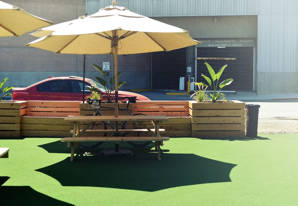 The Sheebs team had previously set up shop at Culver City furniture store HD Buttercup, and their marketing and website shine as much light on local artists and craftspeople as they do on coffee. With bright green artificial turf and large umbrellas for outdoor seating, Shreebs’ new Arts District home keeps the backyard vibe very much alive, while sharing the public space with a juice bar.