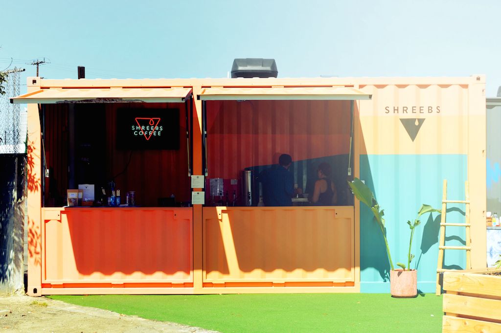 Shreebs Coffee, a popup concept that launched in a residential backyard in Venice, Calif., in 2012, has evolved to now occupy a semi-permanent home inside a repurposed shipping container in the Los Angeles Arts District.