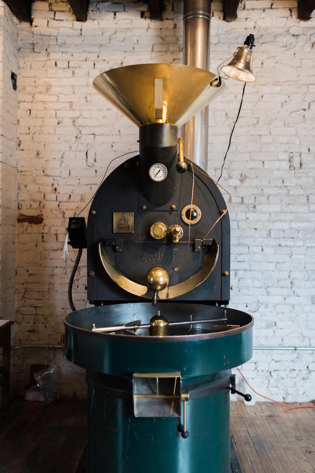 It was last August that the company acquired the black and brass Probat, which Aaron Ultimo promptly took to dismantling, cleaning and refurbishing. “I’m learning as I go, as far as repairs go,” said Ultimo. “I’ve done construction and handyman stuff since I was 17, so I’m not afraid of power tools and stuff like that.”