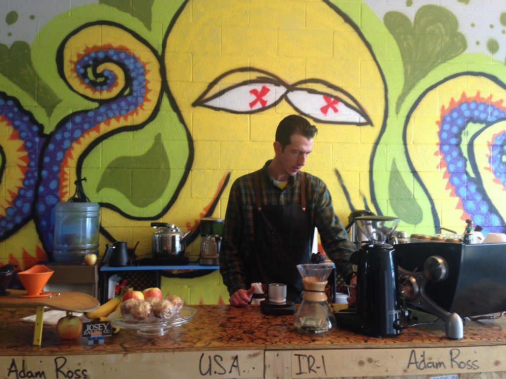 His own thing, nowadays, is essentially to pay it forward to the beans, each of which he roasts to let it do its own thing, as it were. “I try to take each coffee to where that coffee wants to be,” said Adam Ross. “It’s a bean-specific thing for me. You know, Kenyas and washed Yirgs, they like to be light and delicate; Papua New Guineas like to go a little further.”