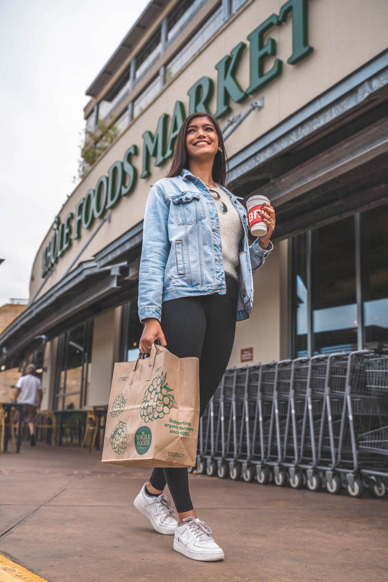 A model portraying a potential Whole Foods customer who is apparently over the moon about his/her/their coffee purchase. Briggo/Whole Foods press photo.