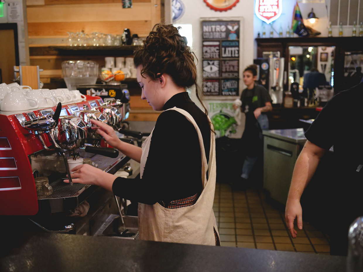 Jenkins has incorporated a house training program inspired by a past trip to the former Barista Guild of America’s (now Barista Guild) Camp Pull-a-Shot. As part of the multistep barista training program, new baristas are also asked to attend three coffee education classes at Perc.