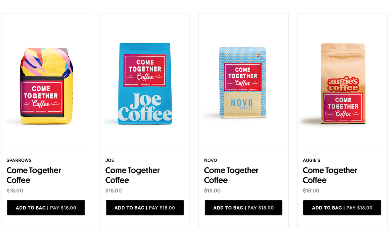 Each 12-ounce bag is currently being sold for $18 plus shipping, with discounts offered for subscription purchases. In addition to the Come Together Coffees themselves, Trade has begun hosting weekly Roaster Roundtables, featuring the roasters behind each week’s offerings.