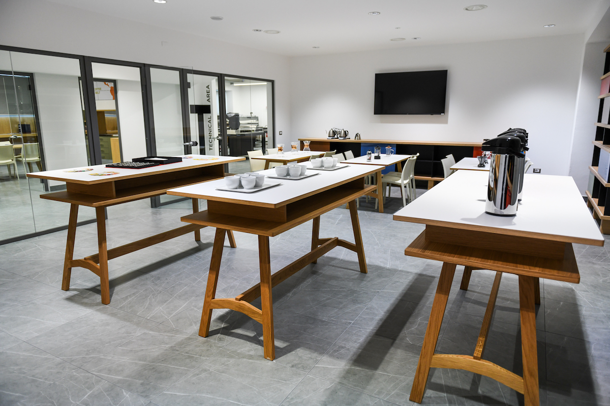 A large laboratory-like workshop inside the campus serves as the new home of Simonelli’s Research and Innovation Coffee Hub (RICH), founded in 2016 as a collaboration between Simonelli and Camerino University for the development of scientific research into the physics and chemistry of coffee.