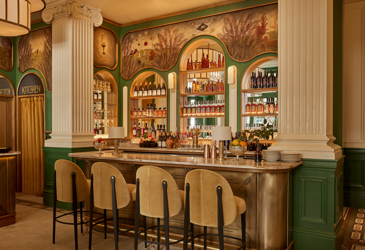 It now unfolds like a 1920s period piece with glamorous Art Deco style, offering coffees all day every day, food from an updated kitchen and tipples from the bar.