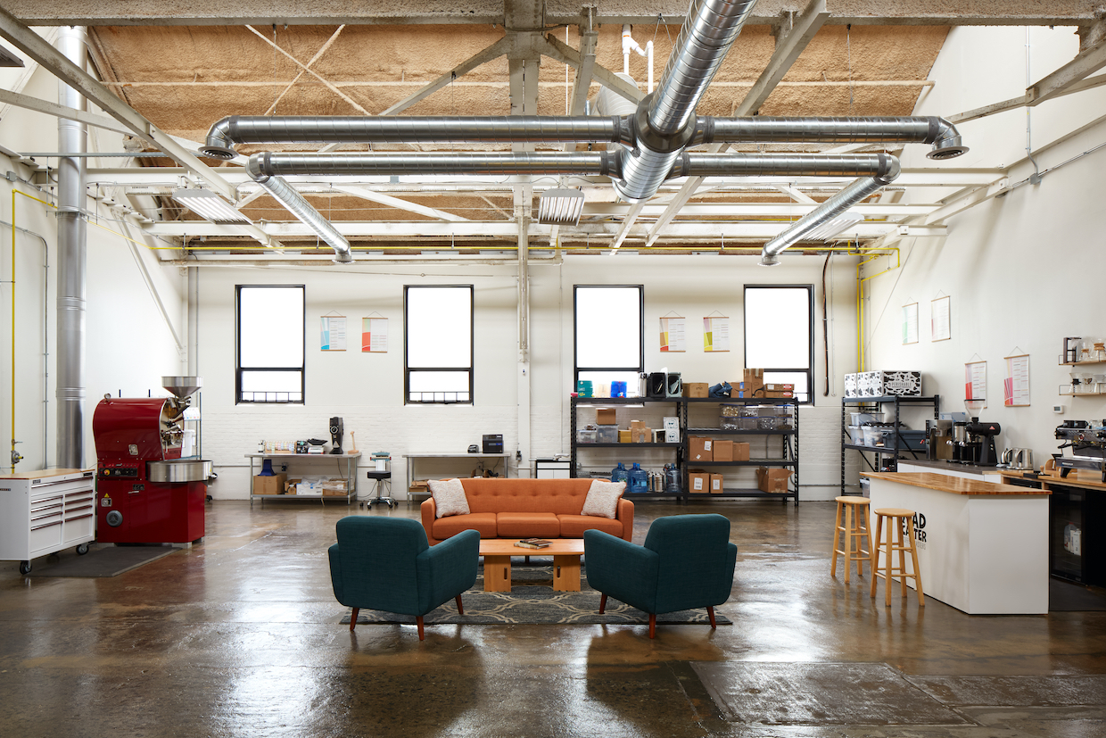 At one end of the wide open 1,800-square-foot space stands a red Diedrich IR-12 machine. At the other end, a cupping and barista training area is outfitted with a La Marzocco Linea PB ABR espresso machine, a Fetco batch brewer and multiple Mahlkönig grinders.