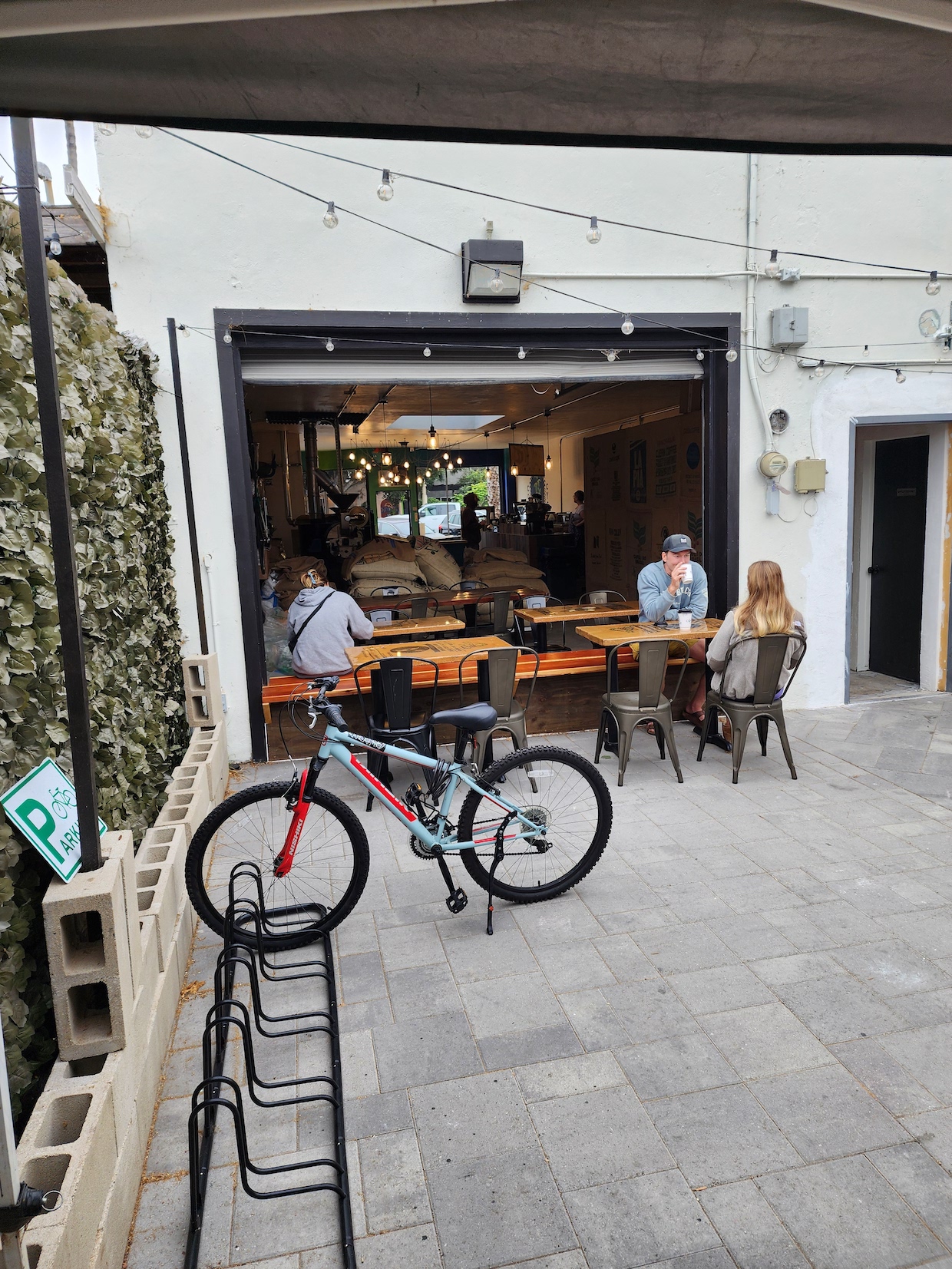 Luckily for the Coffee Cycle crew, parts of the shop — previously a multipurpose event venue — were already nicely built-out, including a cozy back patio where many guests like to take their drinks.